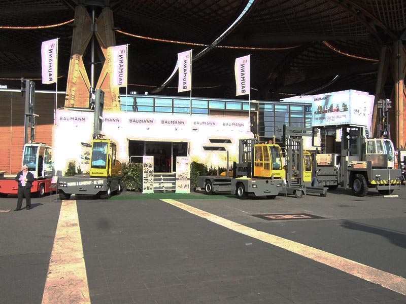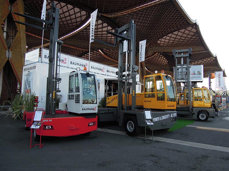 Baumann Side Loaders attracted the attention of many visitors to the 20th LIGNA exhibition in Hanover Germany in May 2013 seeking timber handling equipment.